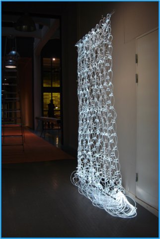 Всего 83 и 166 нитей. Каждая нить состоит из 7 оптических волокон бокового свечения диаметром 0,75мм в прозрачной виниловой оболочке диаметром 3мм.
