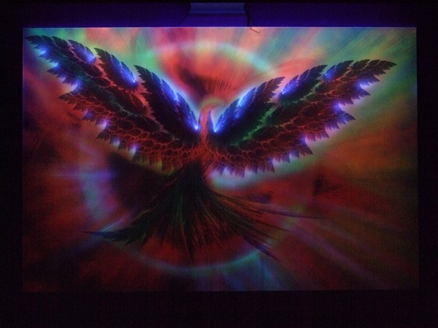 PR006. Постер 600Х900х30мм с флюоресцентной краской и оптическими нитями (светящимися точками), подсвеченными светодиодами. Напряжение питания - 220В. В упаковке. Светильник поставляется отдельно.